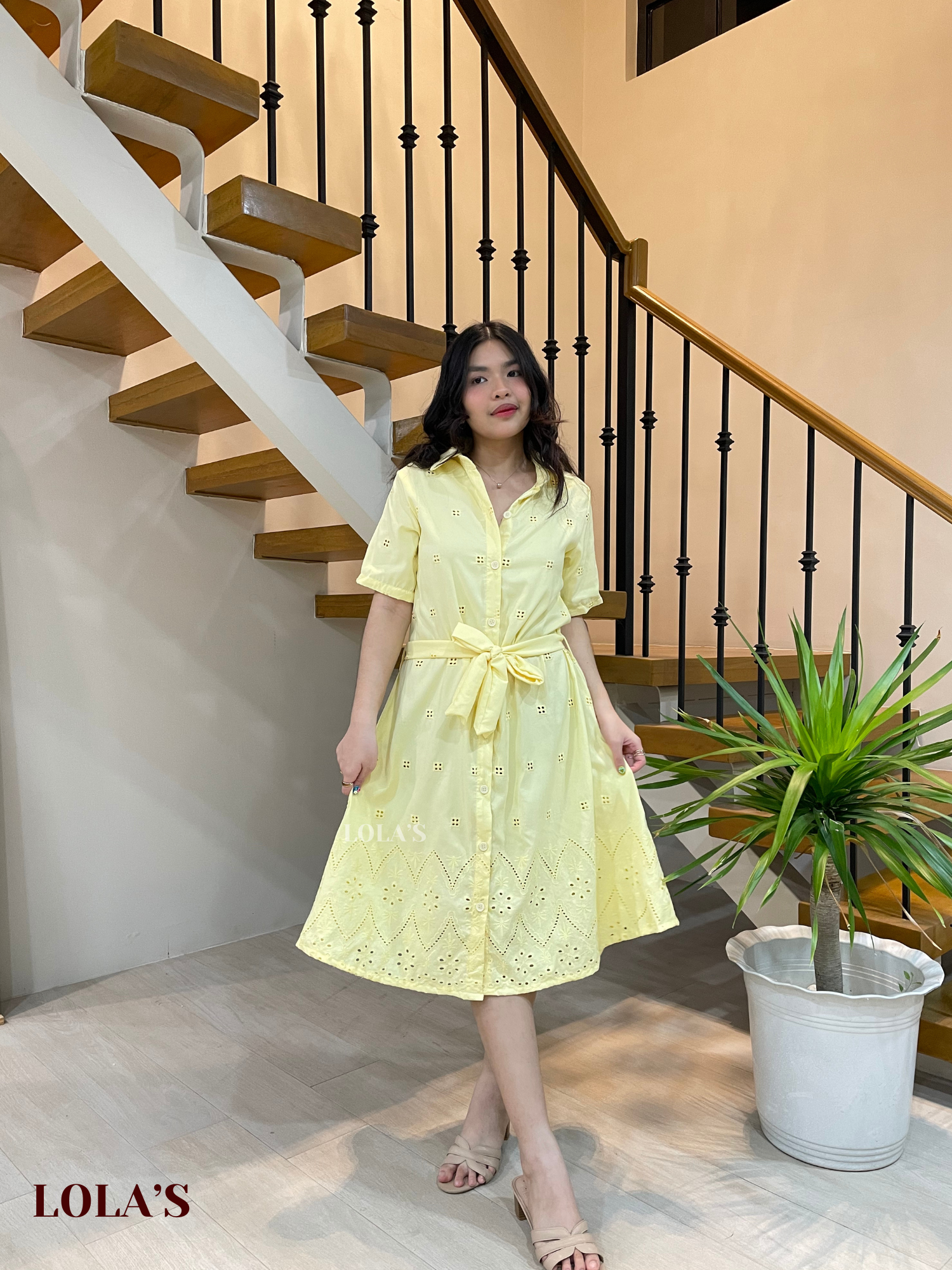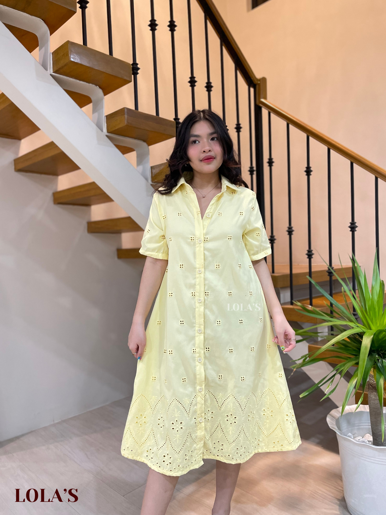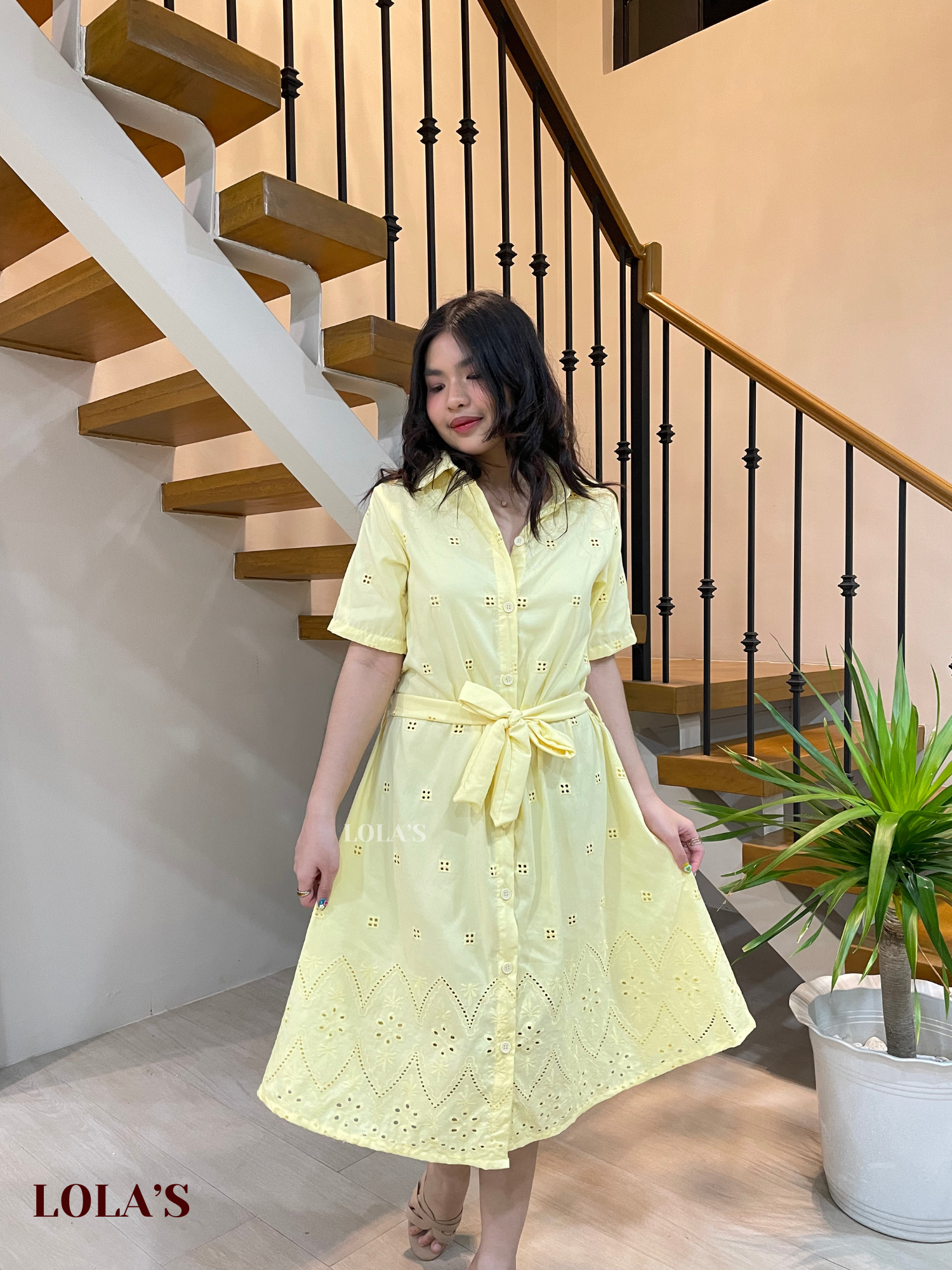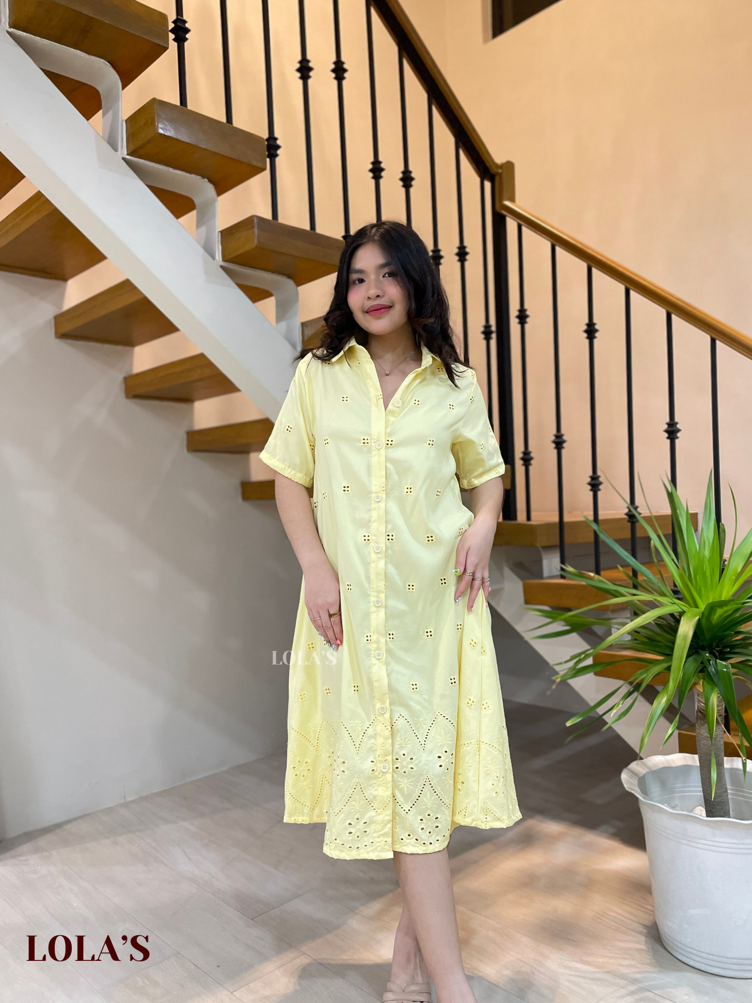 Alexa Polo Dress (Lemon Eyelet)
