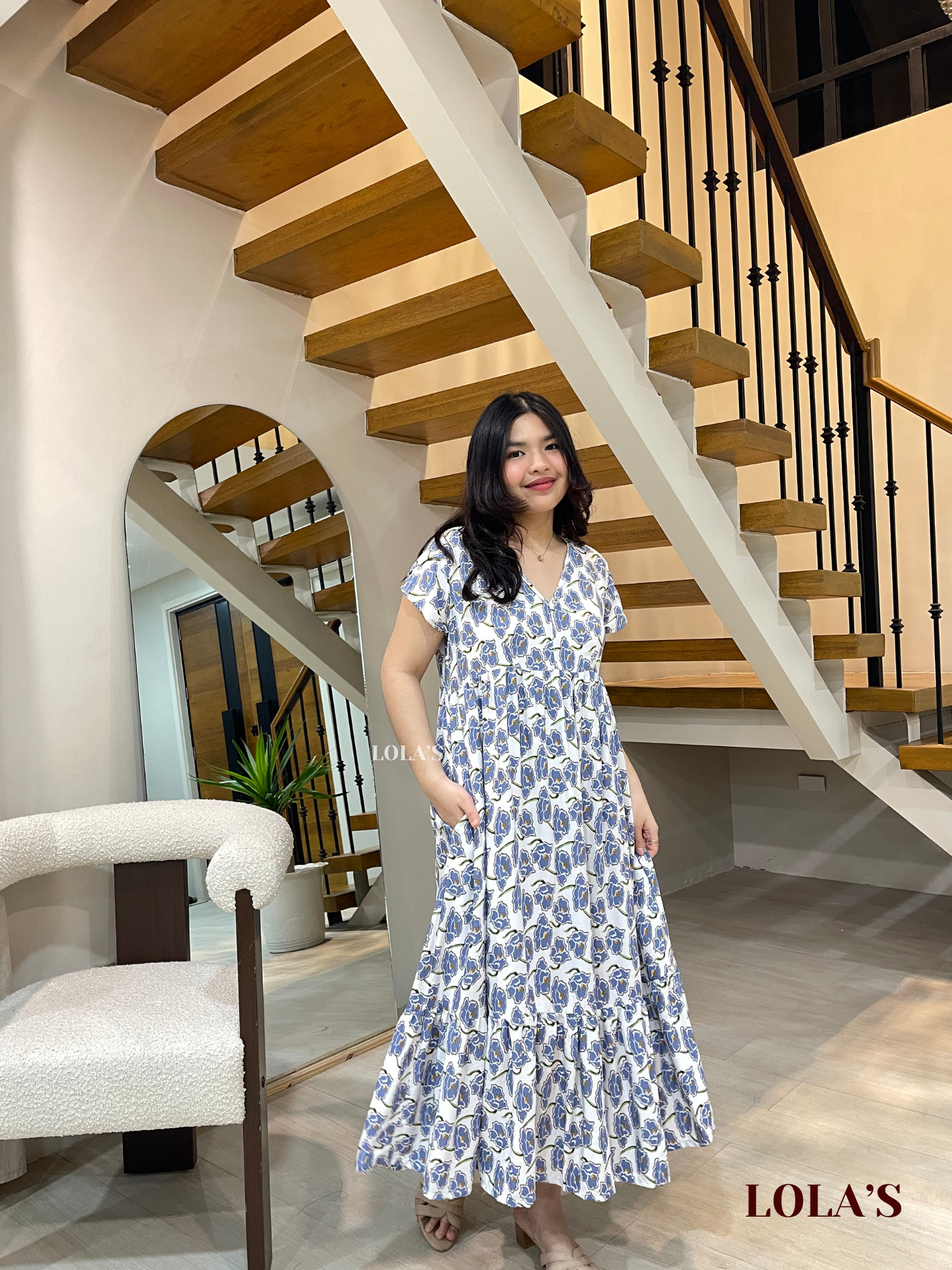 Jane Dress (White-Blue Daffodils)