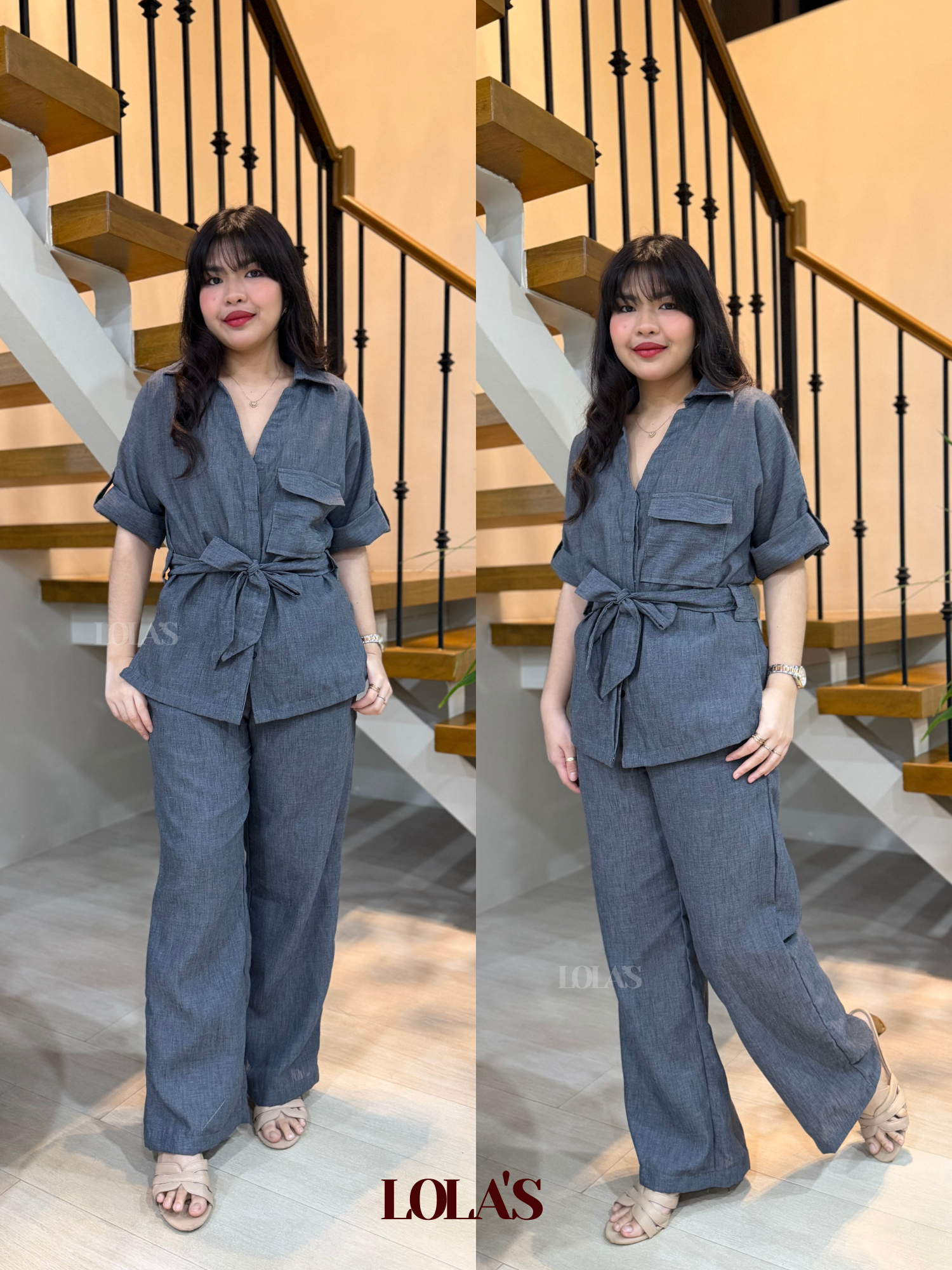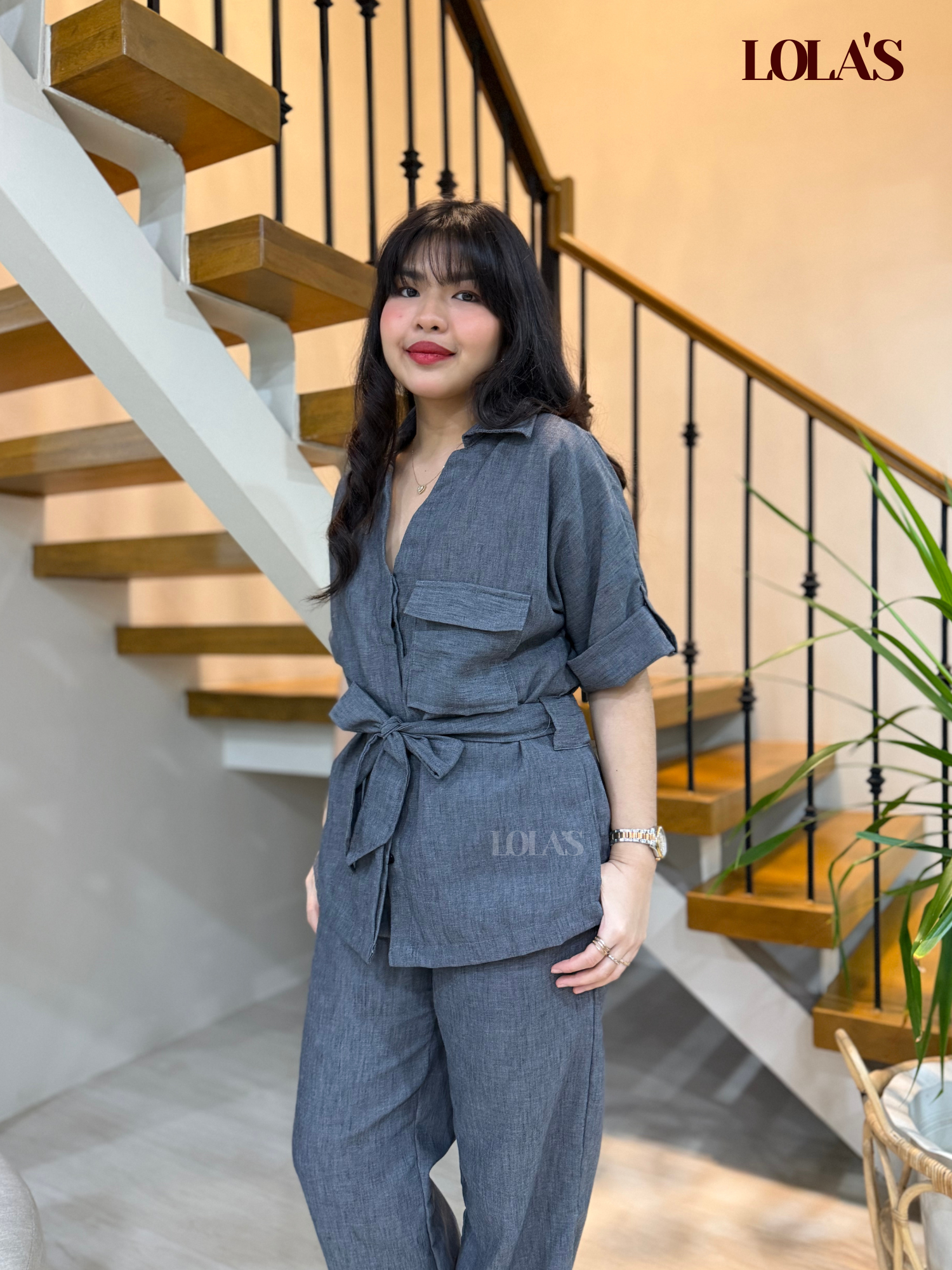 Medilyn Coords is a functional, versatile, and comfortable outfit set made of viscose linen. It has working buttons, a removable tie belt, and a gartered waist.