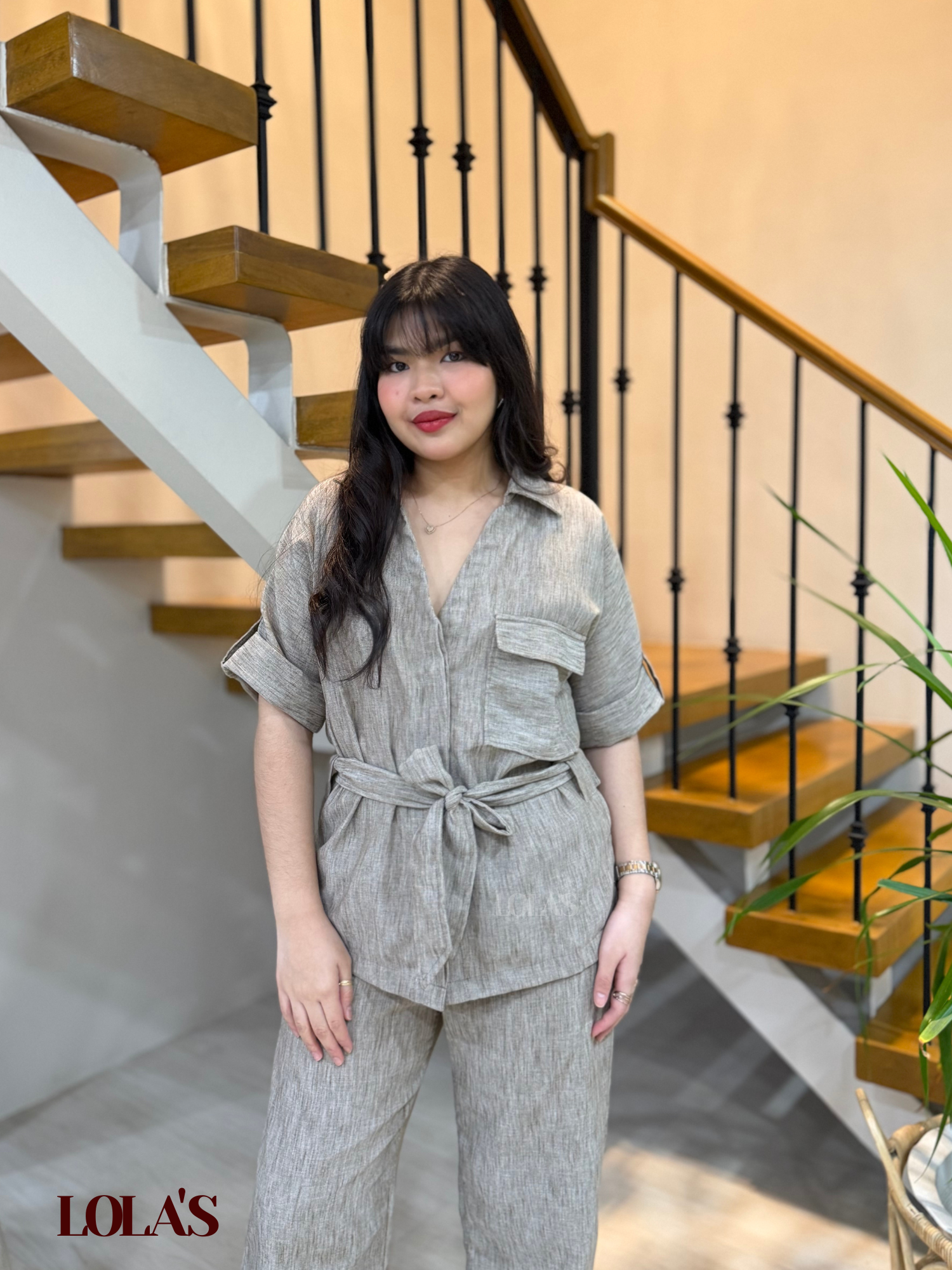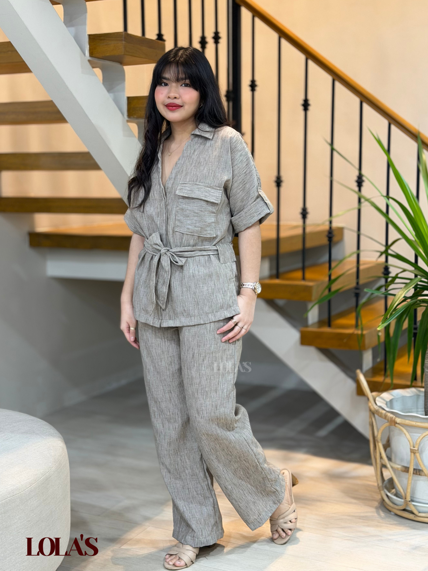 Medilyn Coords is a functional, versatile, and comfortable outfit set made of viscose linen. It has working buttons, a removable tie belt, and a gartered waist.